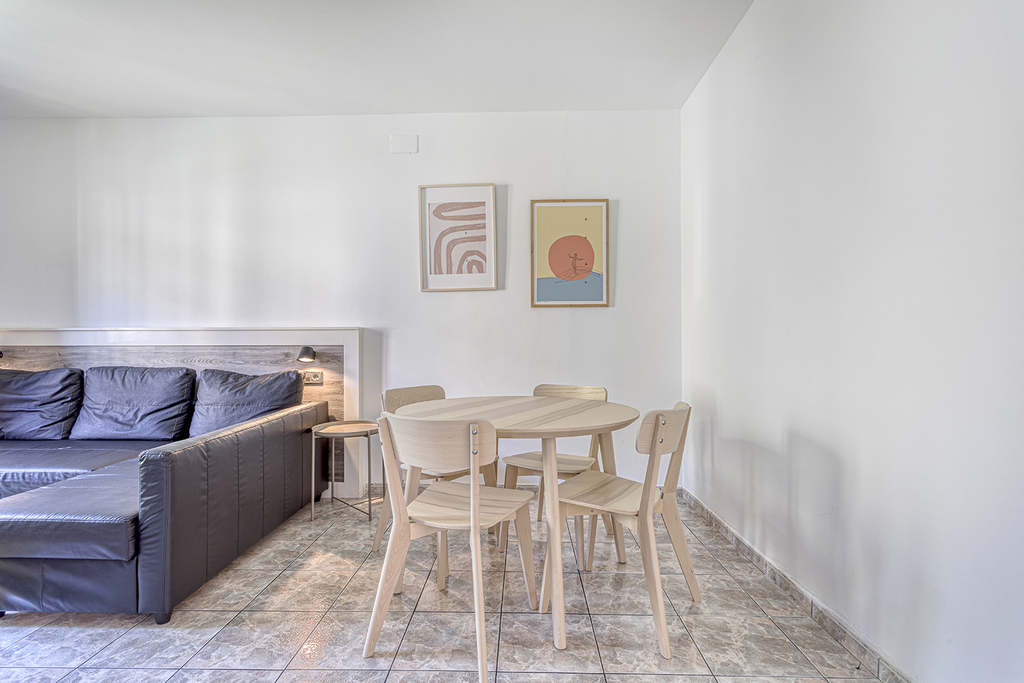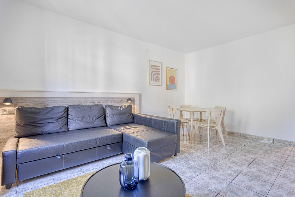 Apartment for 5 or 6 guests of 80 m², ideal for families or groups looking for space, comfort, and a quality stay. Enjoy pleasant views both outside and inside, bringing natural light and a welcoming atmosphere. The apartment features two spacious bedrooms: Main bedroom (35 m²): equipped with a queen-size bed (120x190 cm). Second bedroom (45 m²): spacious and functional, with four single beds (90x190 cm). It also includes a fully equipped independent kitchen and a comfortable living-dining area.