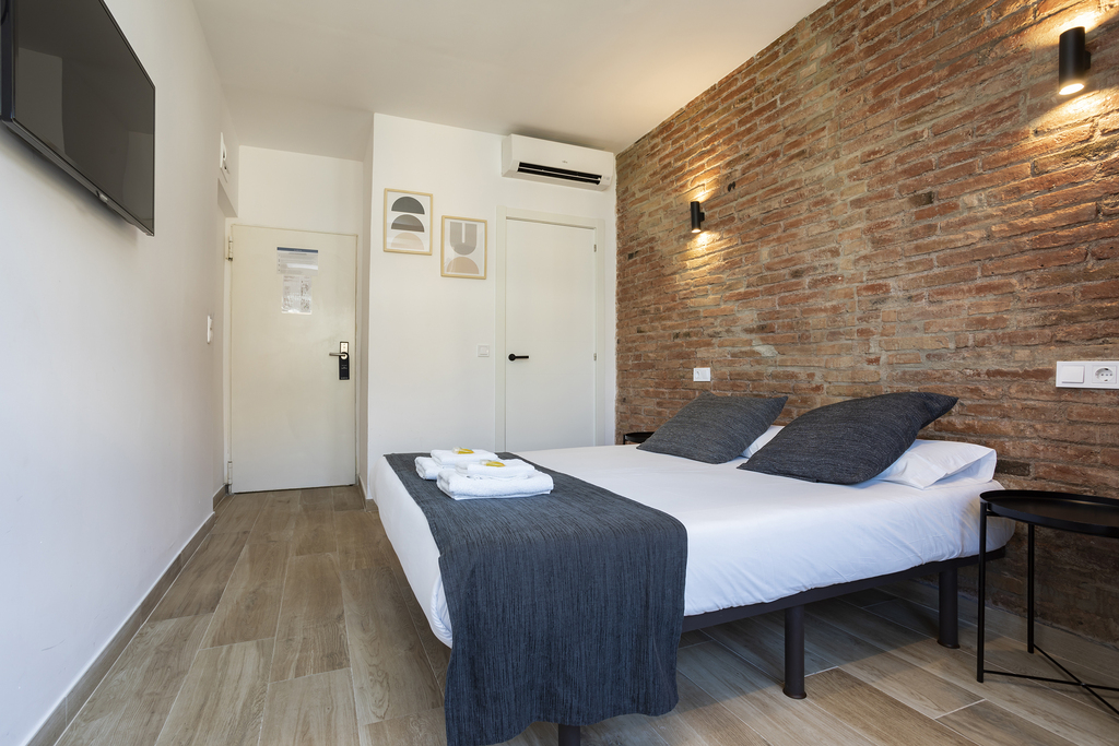 Private Room of 9 m² – A comfortable and functional space, ideal for short stays or travelers looking for the essentials. The room features: 150 cm bed Private bathroom Smart TV Open wardrobe Safe Exterior views (street or building courtyard) The room includes all basic and essential services for a comfortable and pleasant stay, with daily cleaning included.